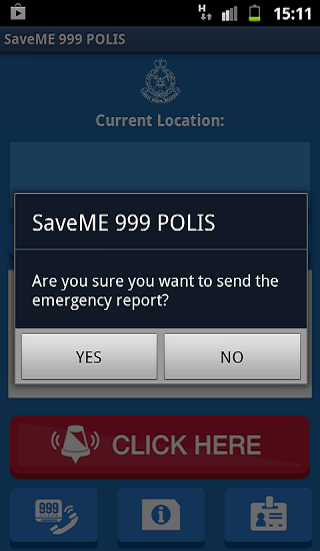 Users can activate the application by pressing the ‘SaveME 999 POLIS’ icon on the smart phone. The GPS address and the sender’s details such as name, telephone number, type of emergency and registered address of the sender will be transmitted automatically to MERS 999 Response Center(MERS 999 RC).